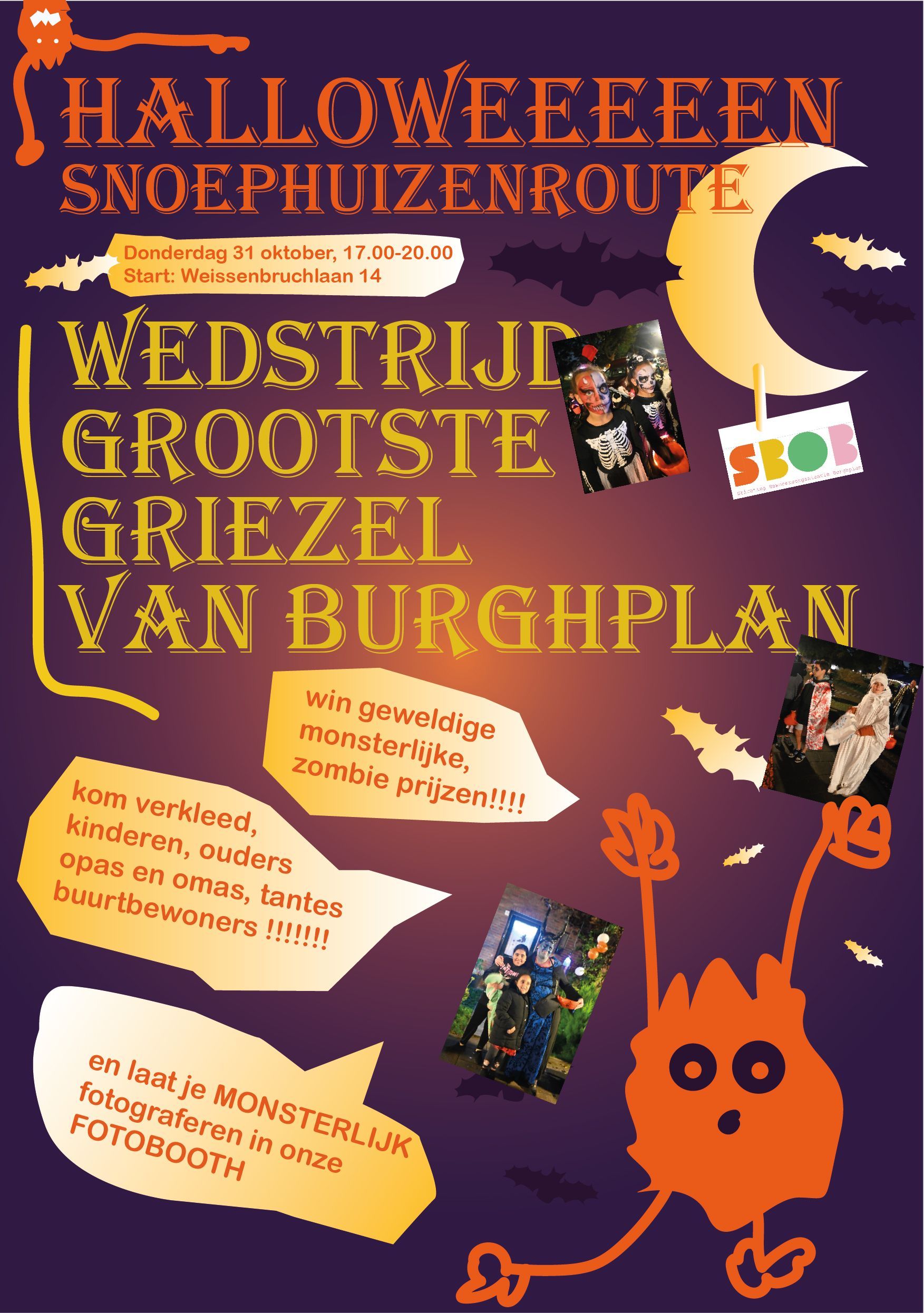 Whoeeehoeee het is bijna zo ver! Doe je mee met wedstrijd HALLOWEEN, Grootste Griezel van Burghplan? Haal de grootste griezel, spook, monster en zombie in je naar boven en kom verkleed naar Halloweeen snoephuizenroute!