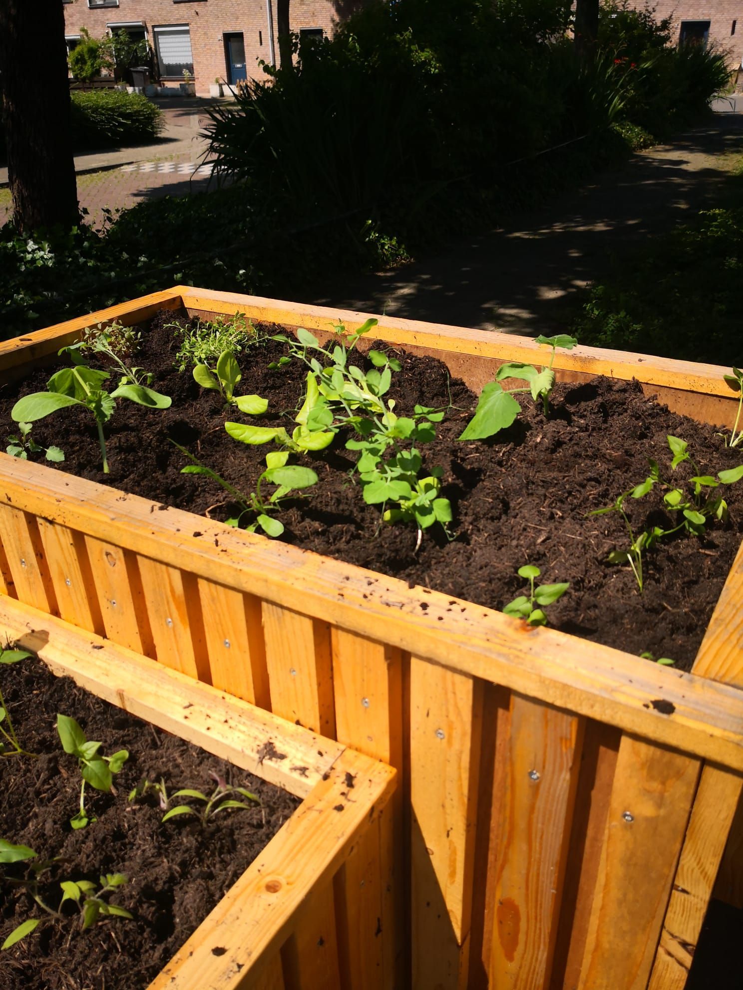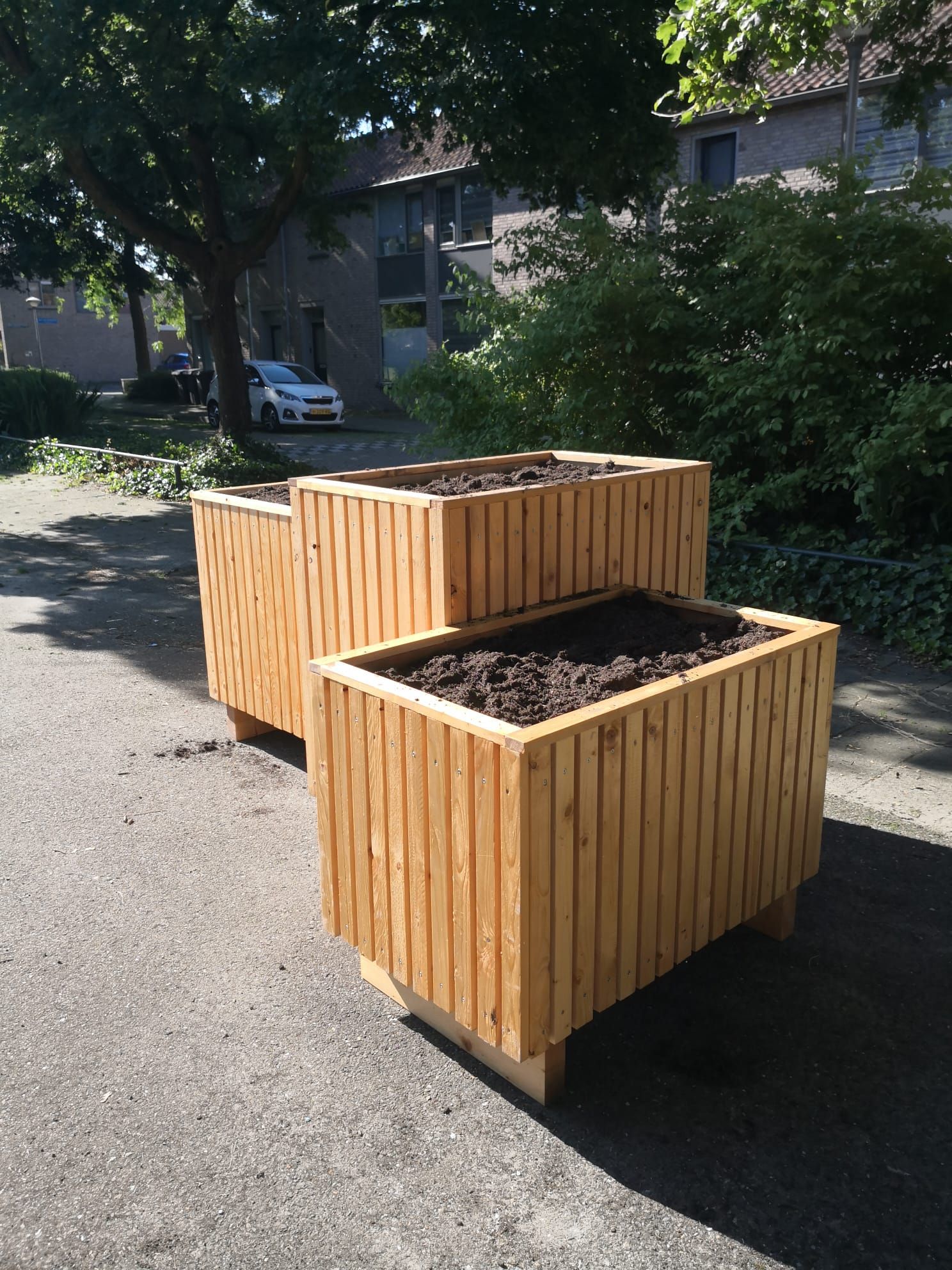 Inmiddels is het groenproject van start. De bakken zijn samen met bewoner Sanne, Eva (Lady Penelope), de SBOB, Woonbedrijf, gemeente en het Vakcollege tot stand gekomen.