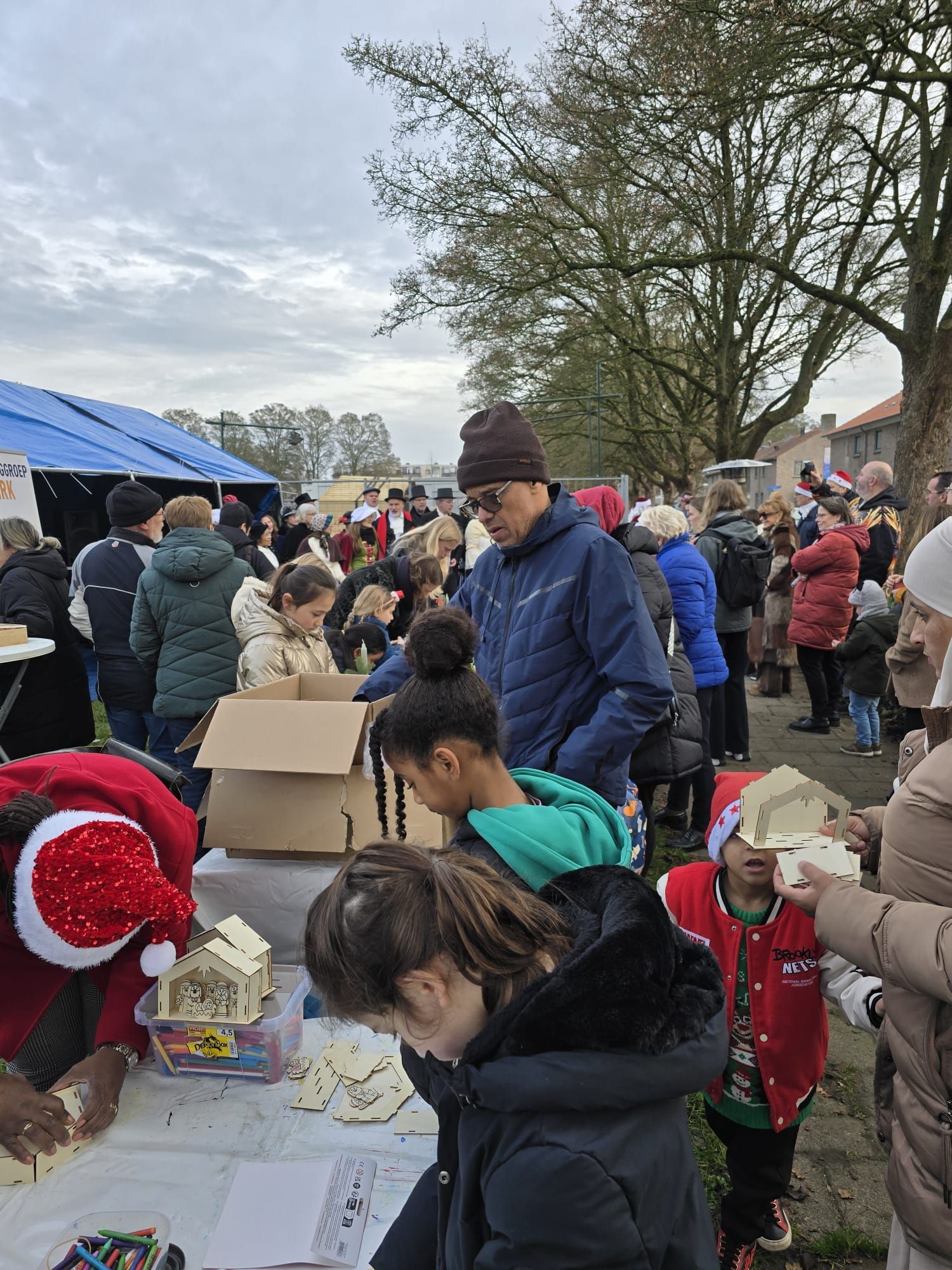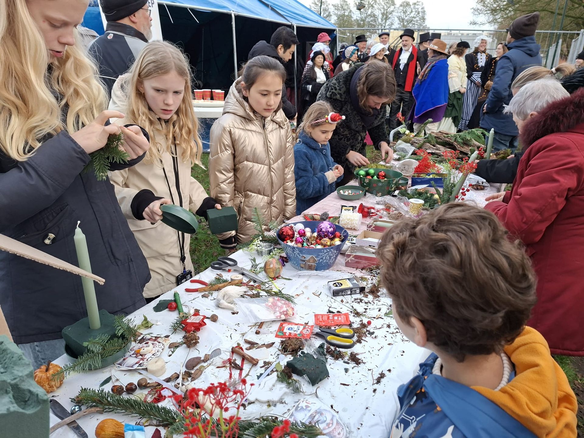 Zangkoor Dirk en Marjoleine maakten muziek, er werden kerststukjes gemaakt en ook de kinderen knutselden weer volop. Speciale dank voor het bouw- en sjouwteam voor het opzetten van tenten, kerststal etc.