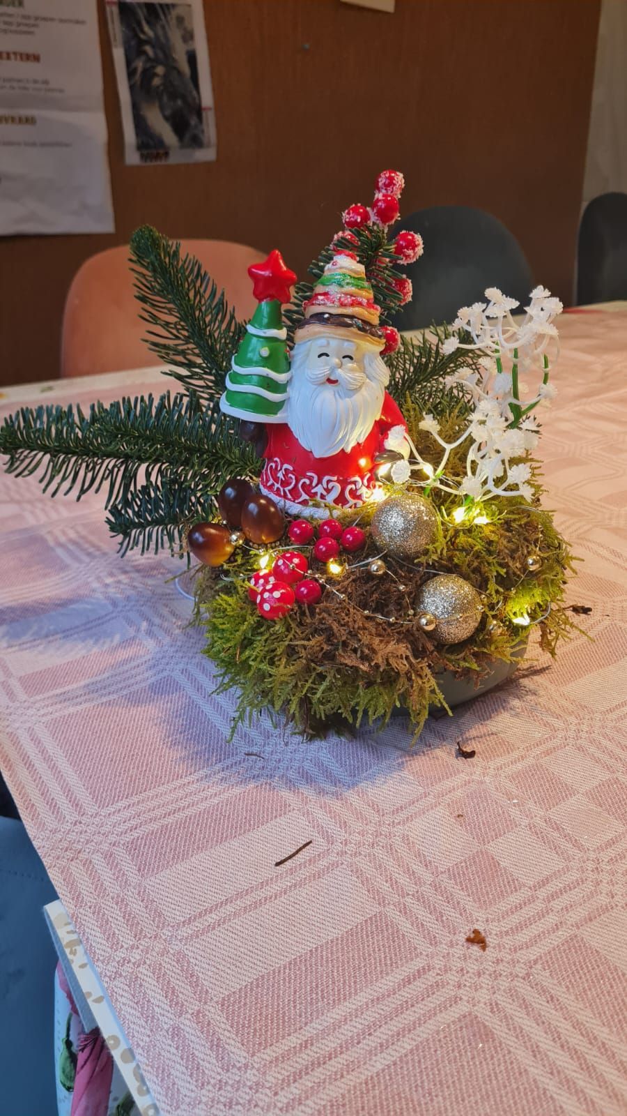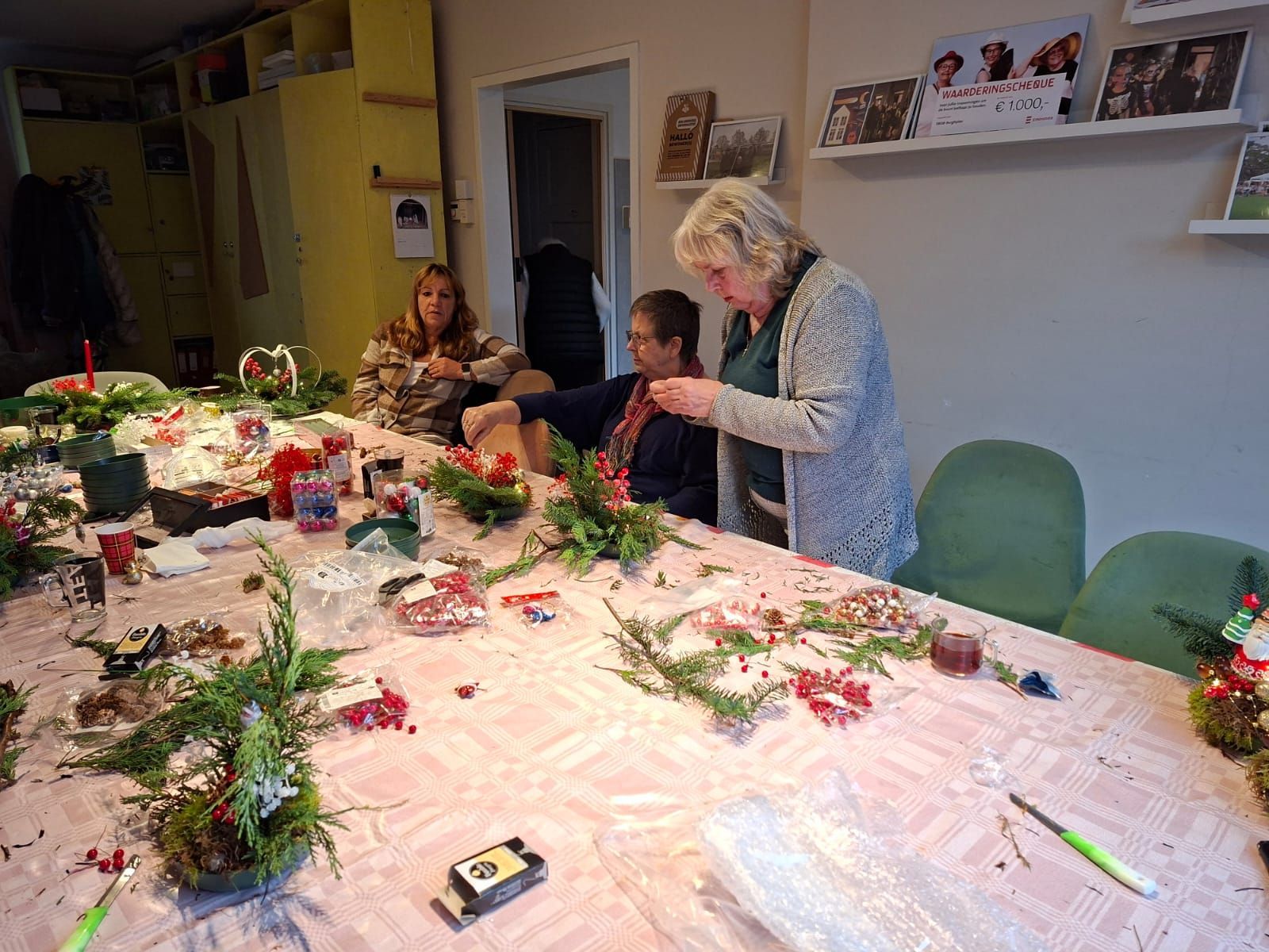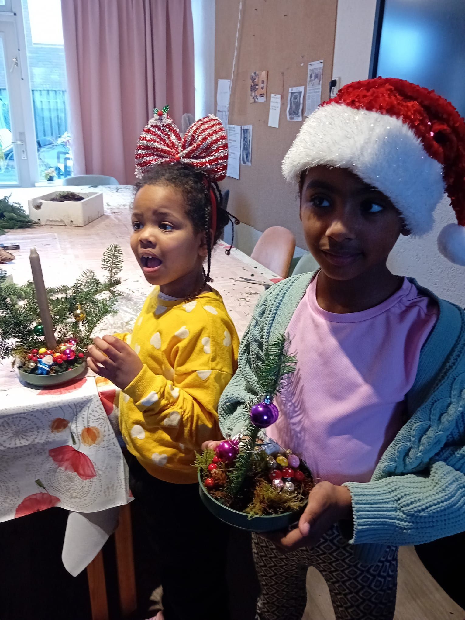 Door de Hobbyclub en de kinderen zijn er mooie kerststukjes gemaakt.