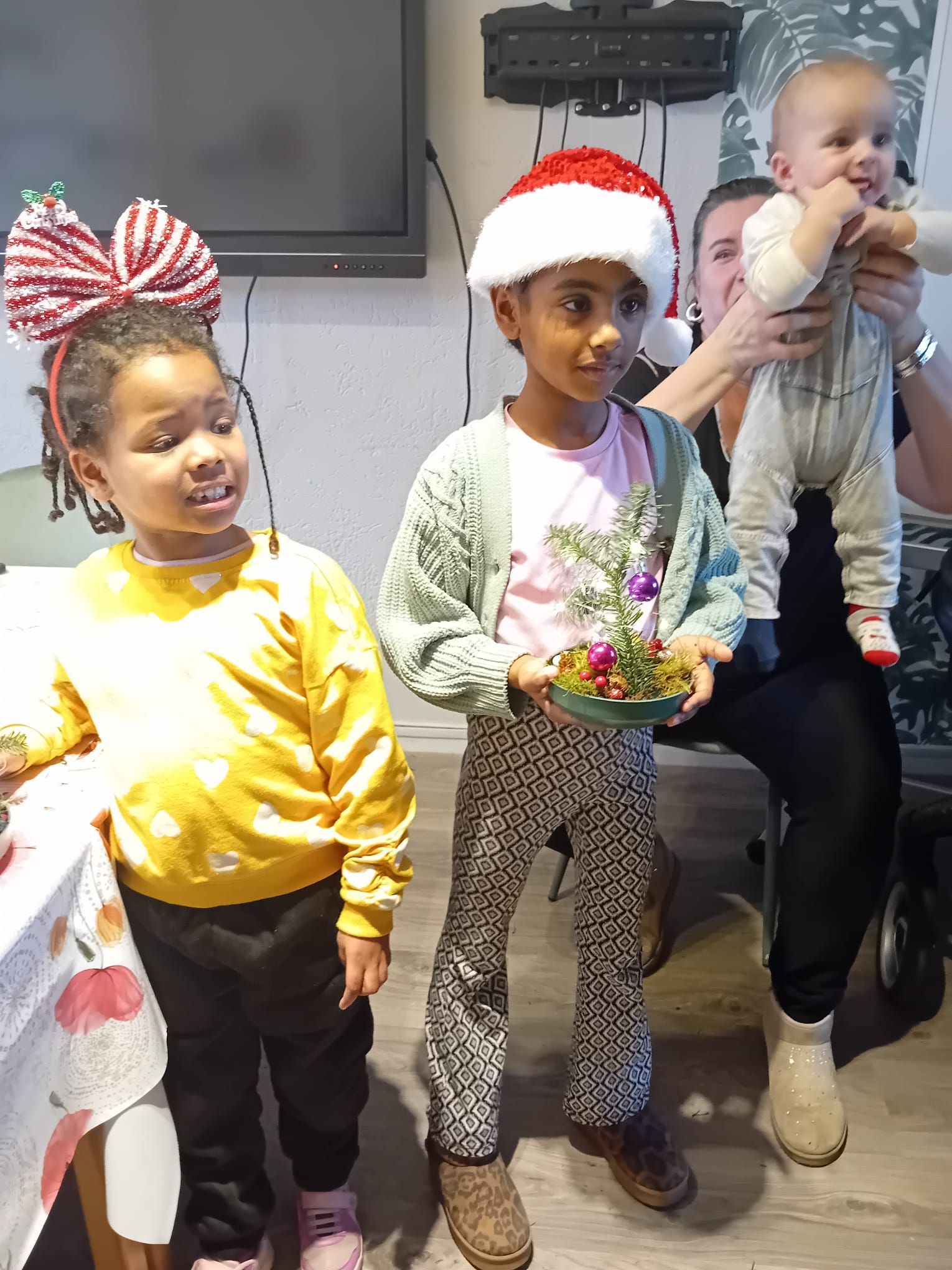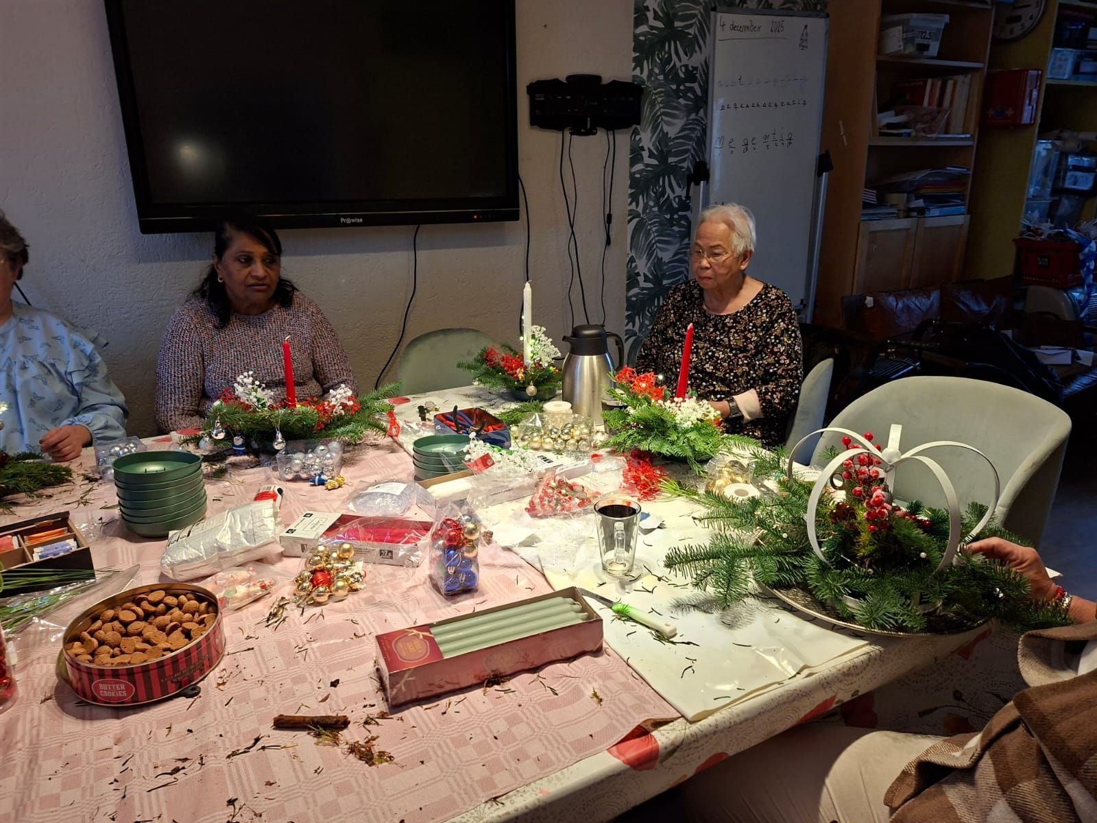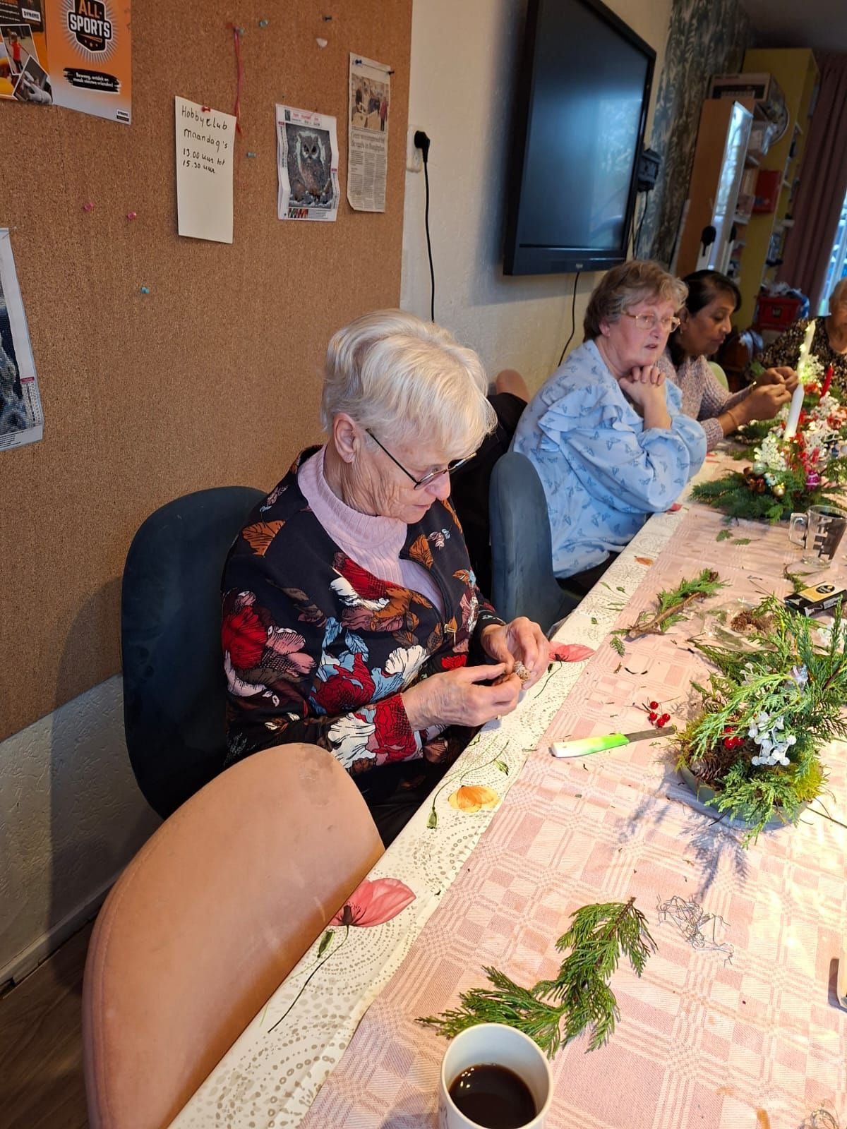 Door de Hobbyclub en de kinderen zijn er mooie kerststukjes gemaakt.
