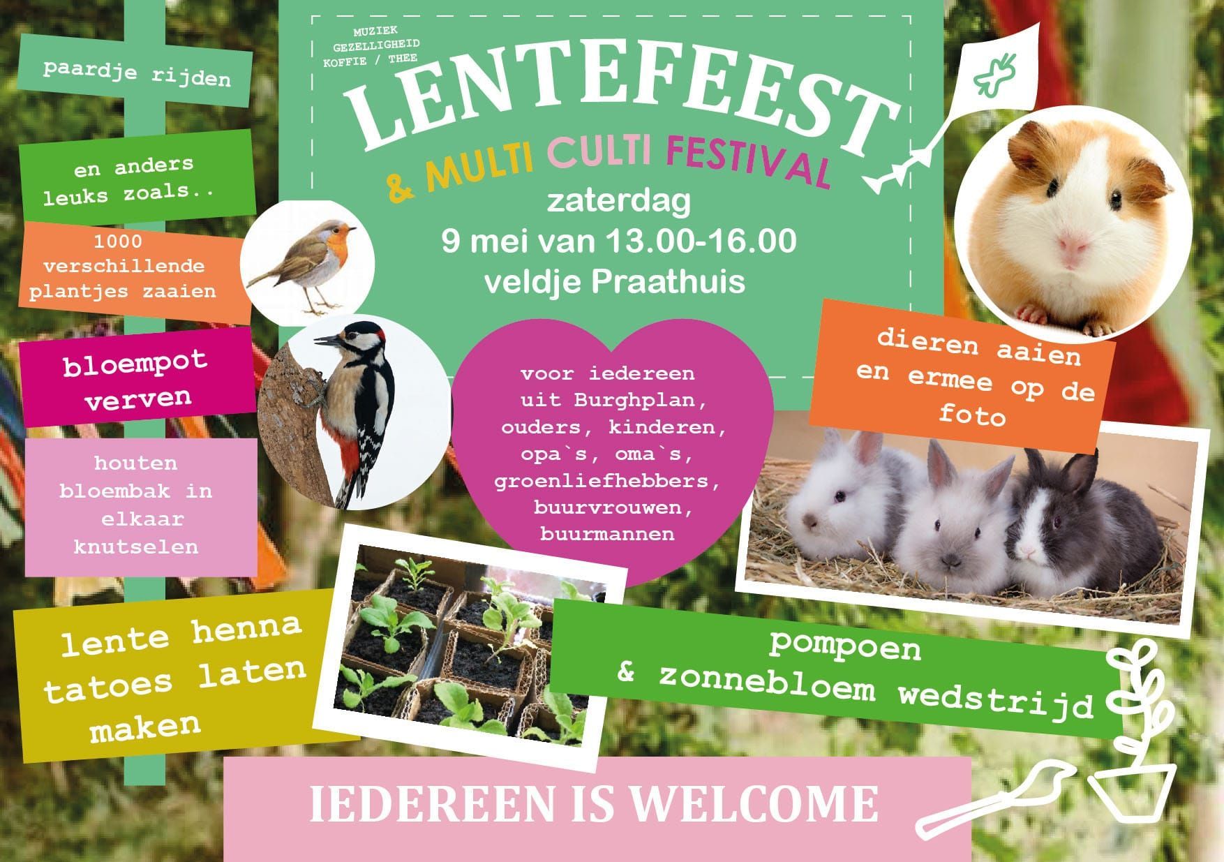 Het eerstvolgende evenement is het Lentefeest, gecombineerd met het Multiculti festival op 9 mei.