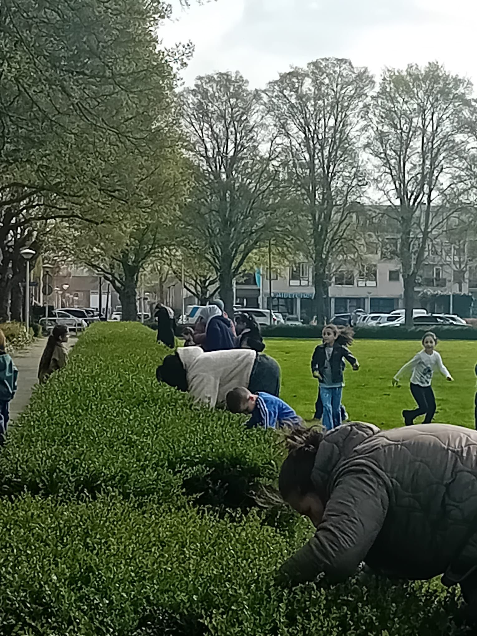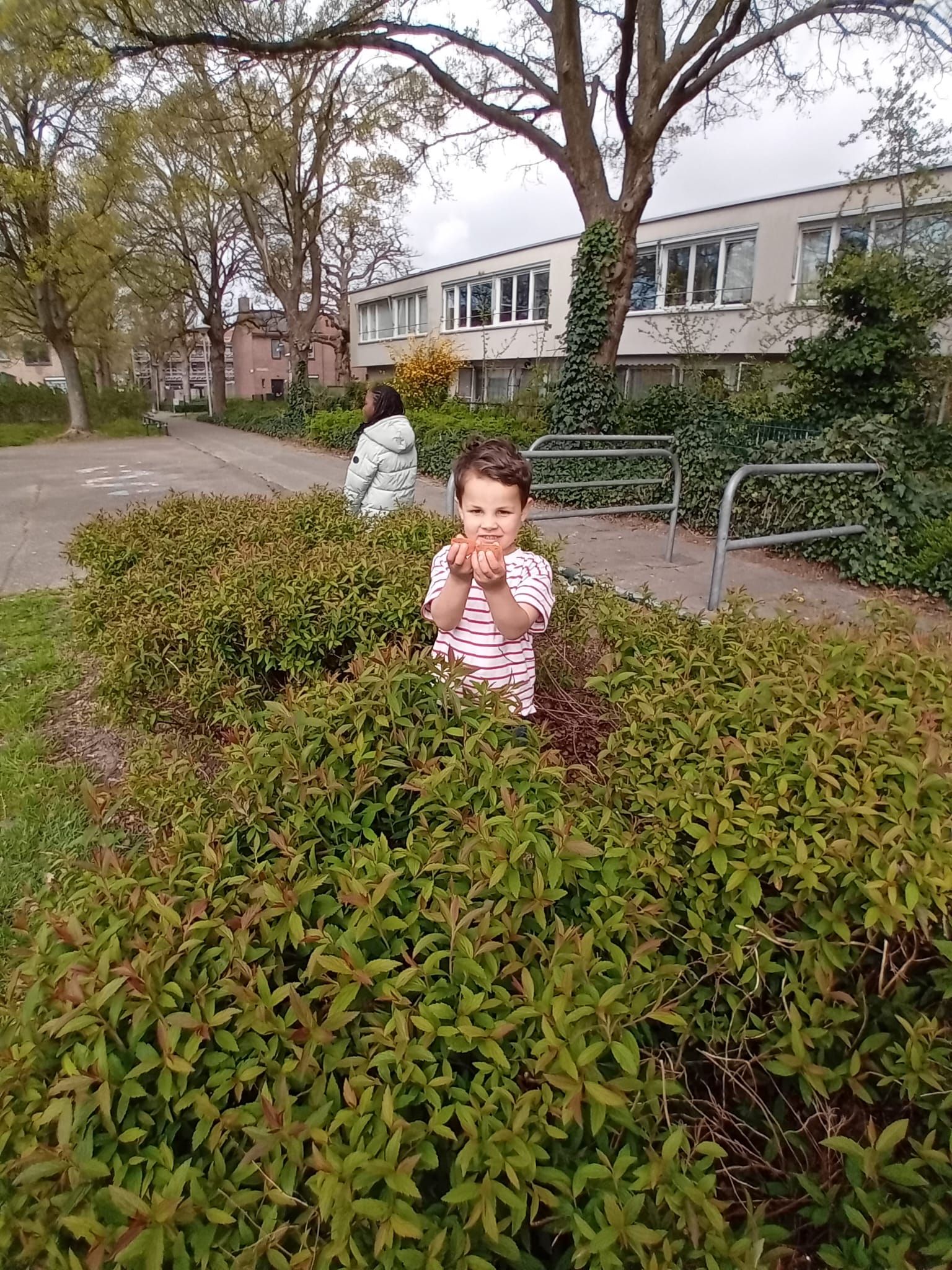 Na hard zoeken en werken, gesnuffeld in hoeken en onder struiken zijn alle paaseieren en ook de 2 gouden eieren gevonden.
