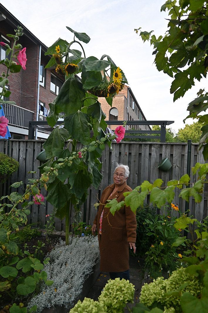 De winnaars: Petra Holten & Chendra hebben gewonnen met een 2,95 m hoge zonnebloem. Andere bewoners hebben ook enorm goed hun best gedaan en er zijn verschrikkelijk mooie exemplaren gekweekt! Blijf vooral zaaien en kweken!