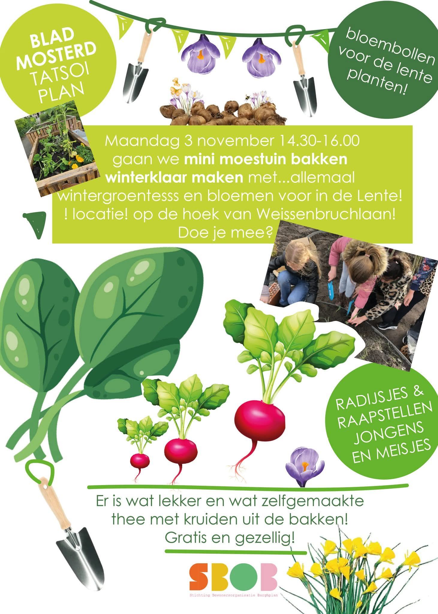 De groenclub begon met de volgende oproep voor bewoners van Burghplan:
