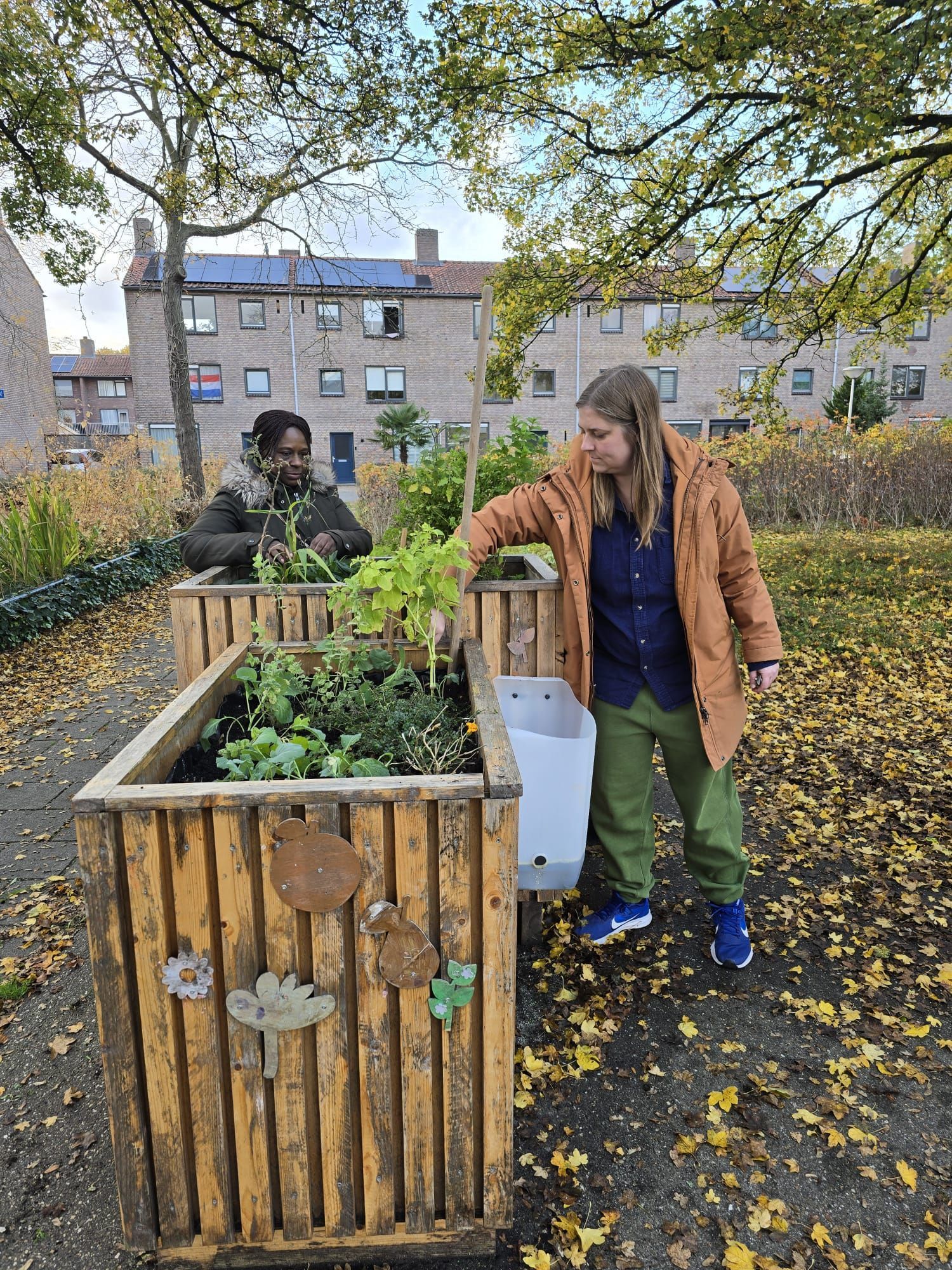 Inmiddels is het groenproject van start. De bakken zijn samen met bewoner Sanne, Eva (Lady Penelope), de SBOB, Woonbedrijf, gemeente en het Vakcollege tot stand gekomen.