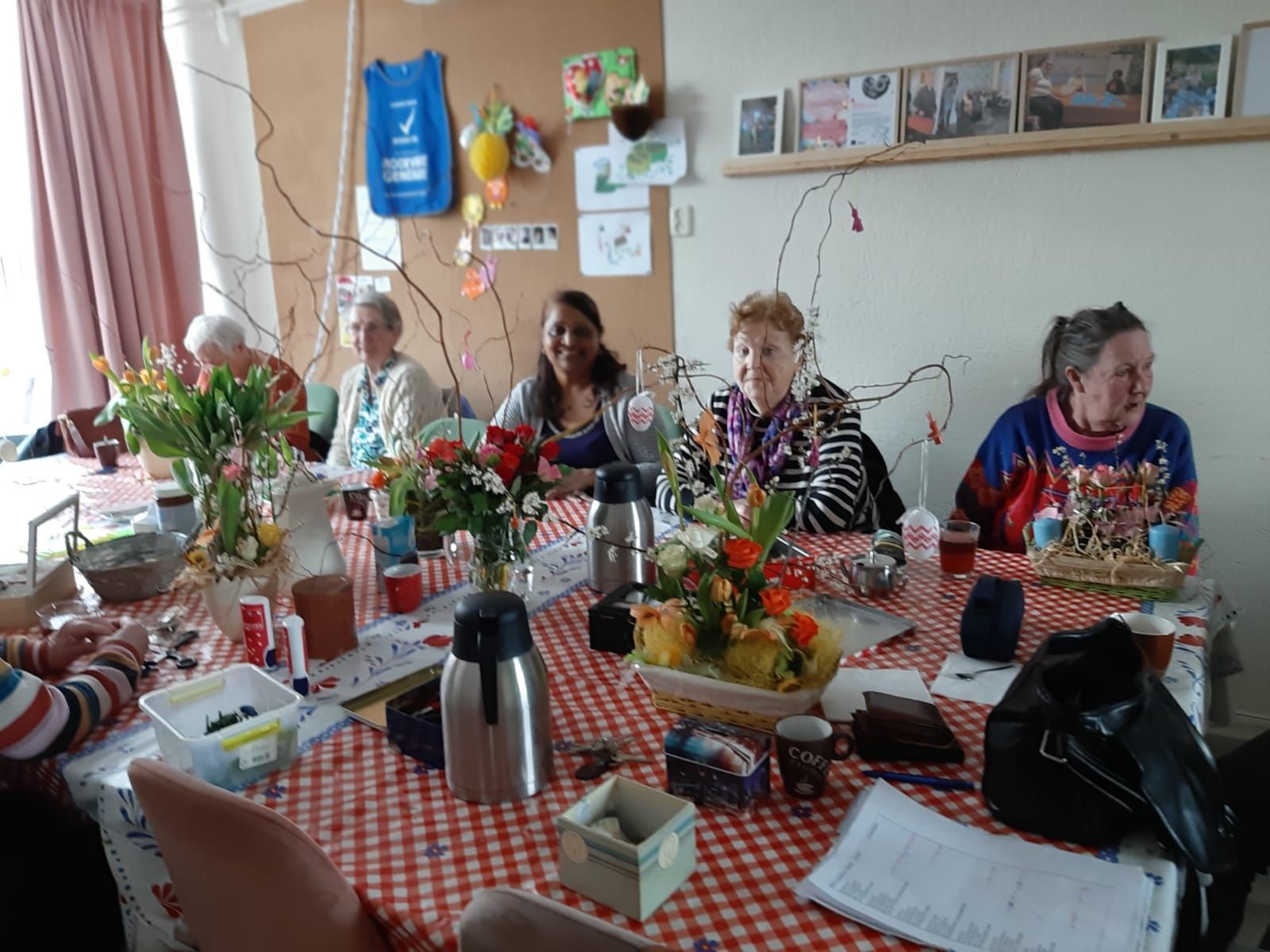 Eva verzon een wervende tekst en maakte een flyer: Helemaal klaar met dat worstelen? Kom bij de hobbyclub, er is weer plek.