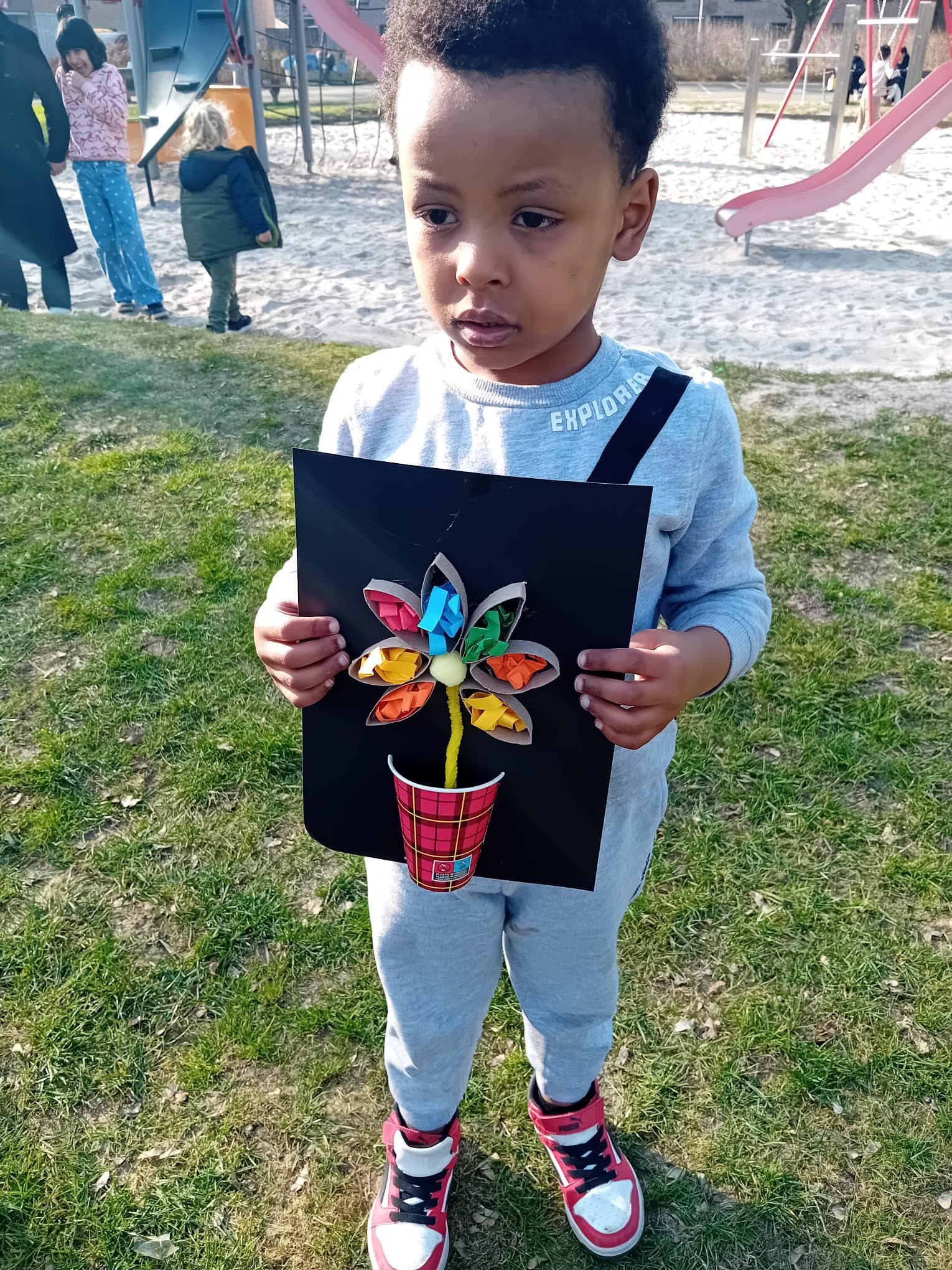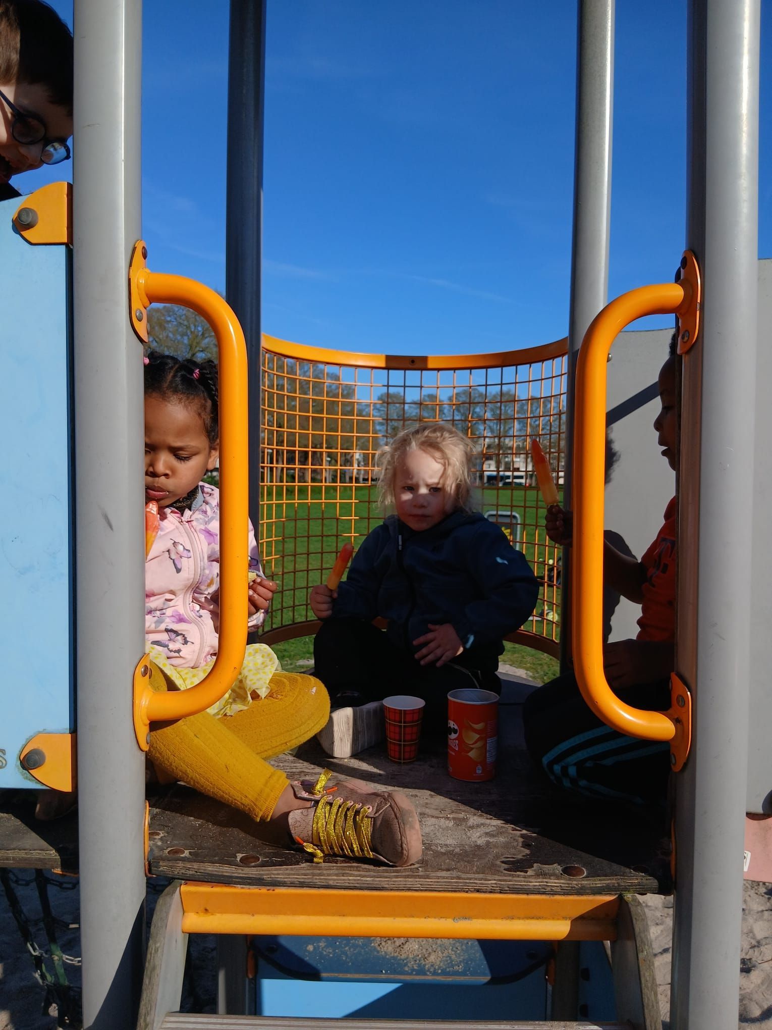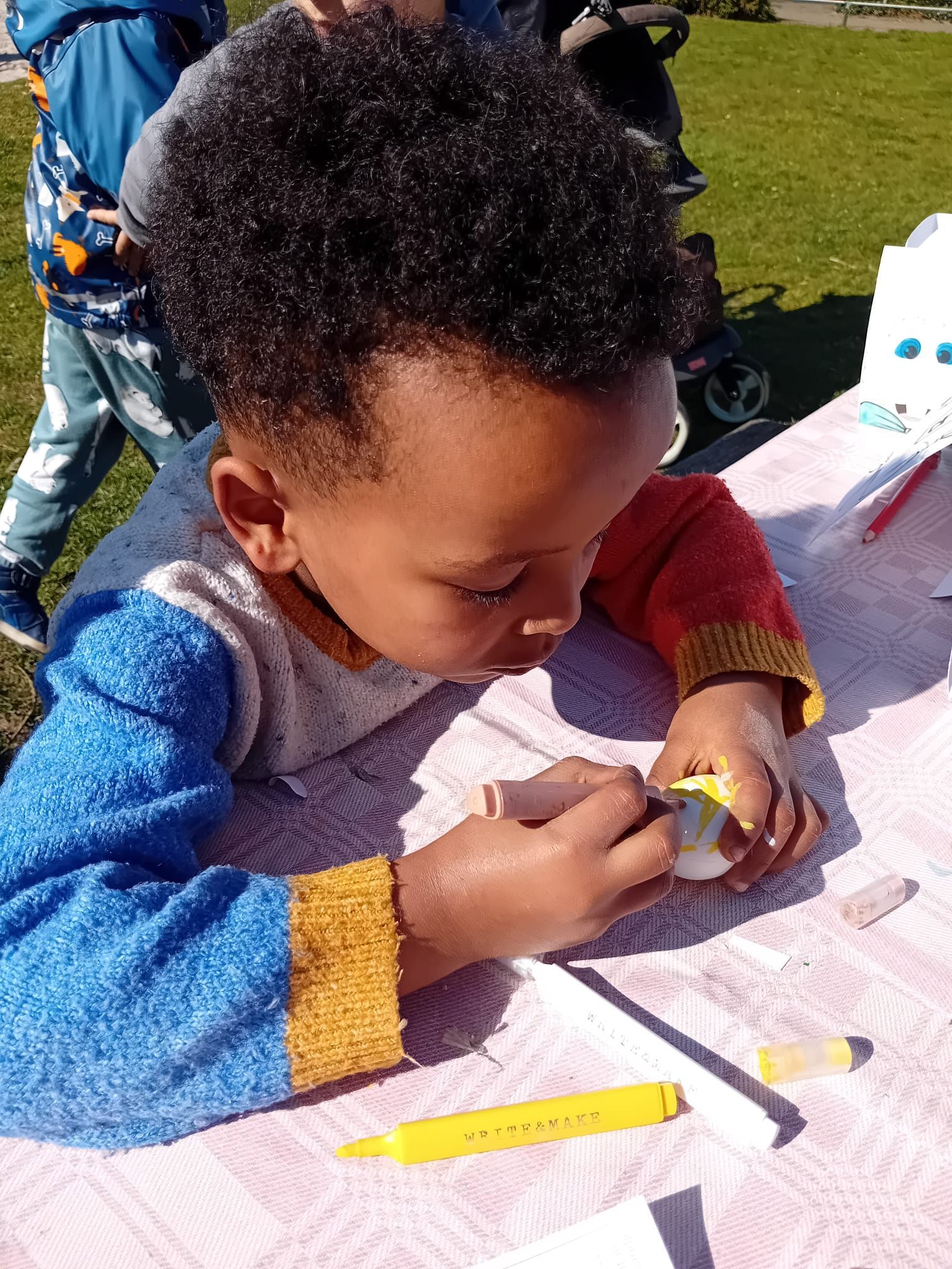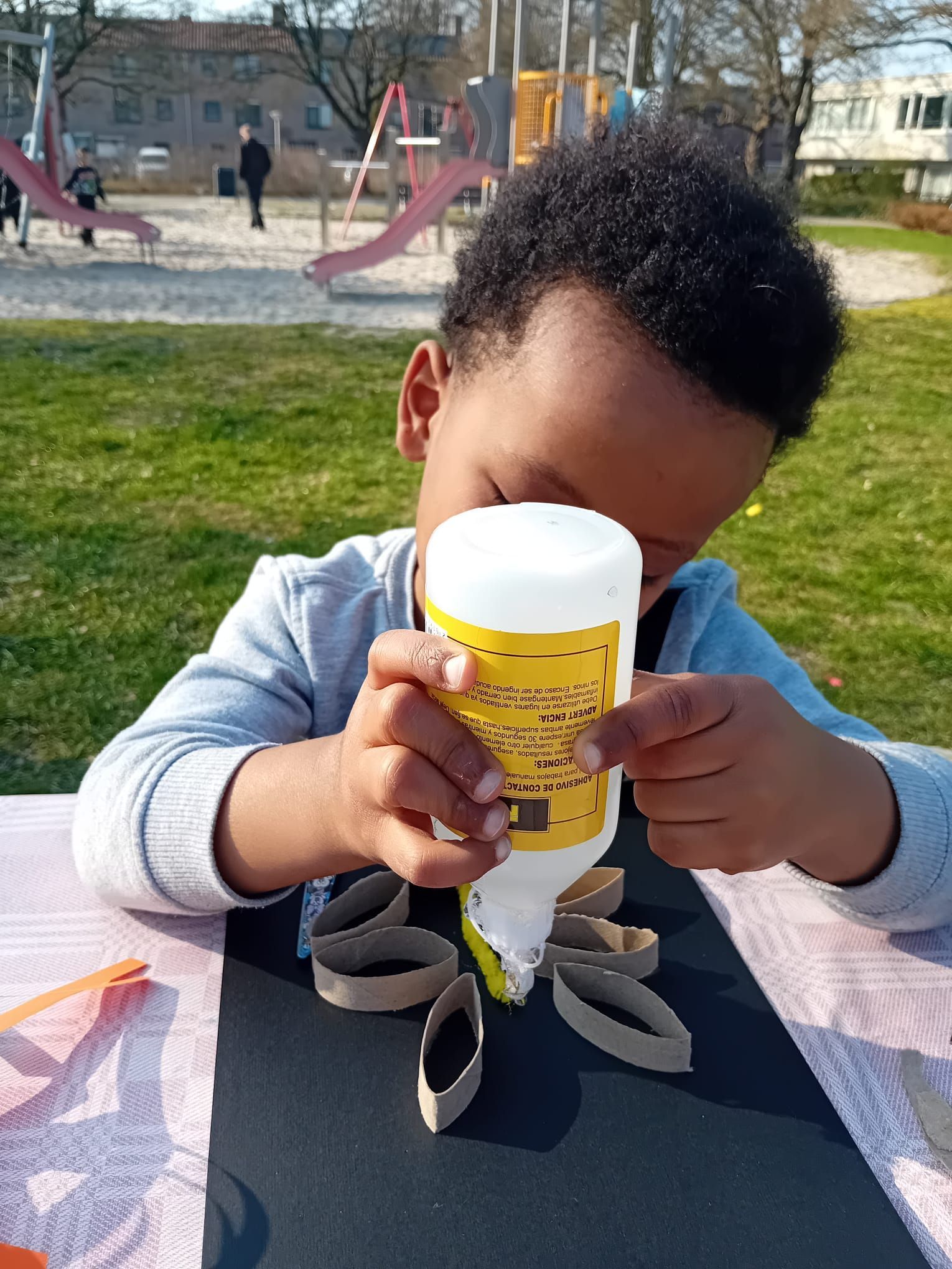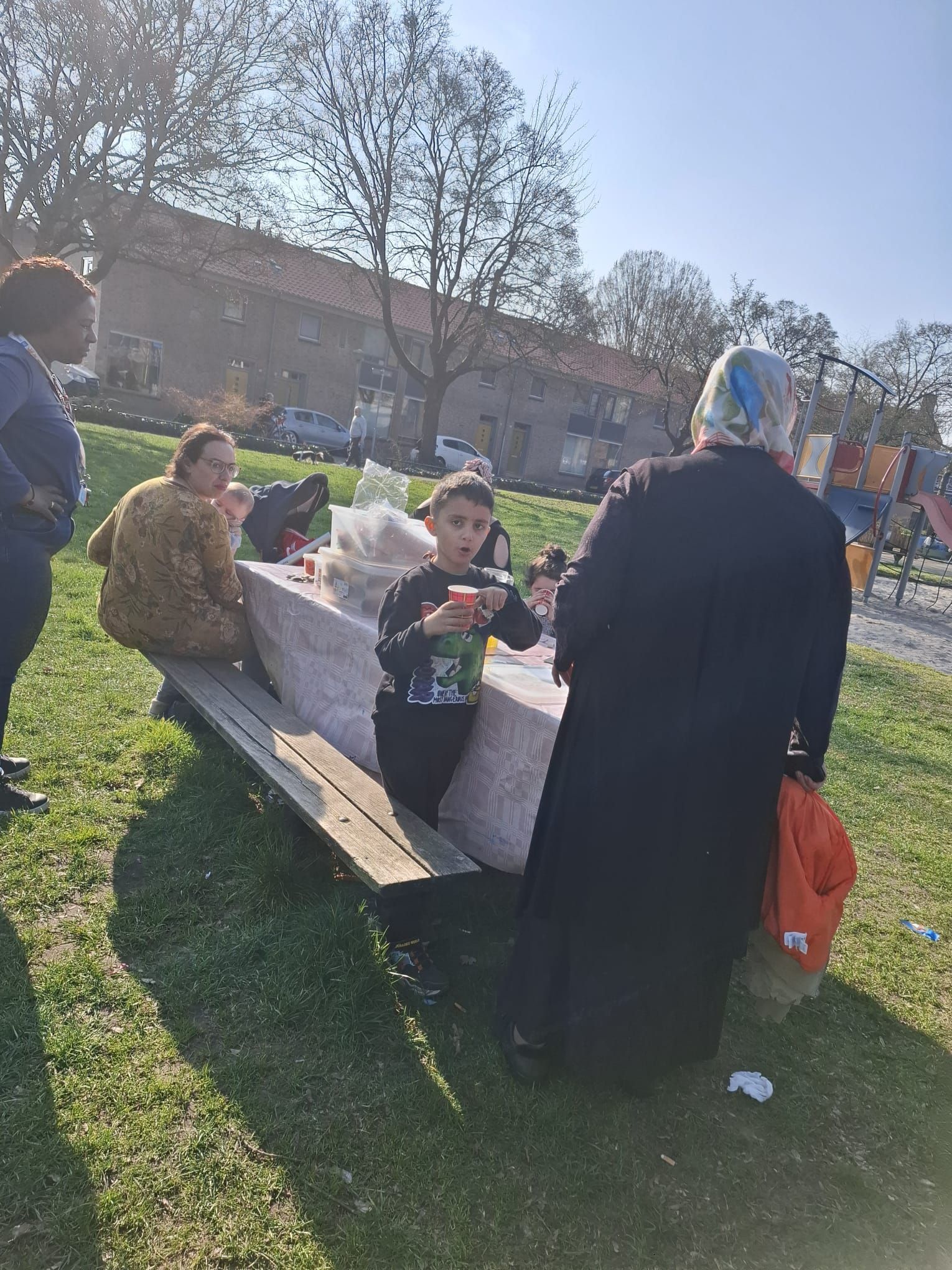2026-04-01: De kinderen zijn weer volop bezig met knutselen. Bij het mooie weer kunnen ze gebruik maken van het veld voor de deur van het Praathuis. Door het Woonbedrijf worden ze getrakteerd op wafels, poffertjes, frisdank en water.