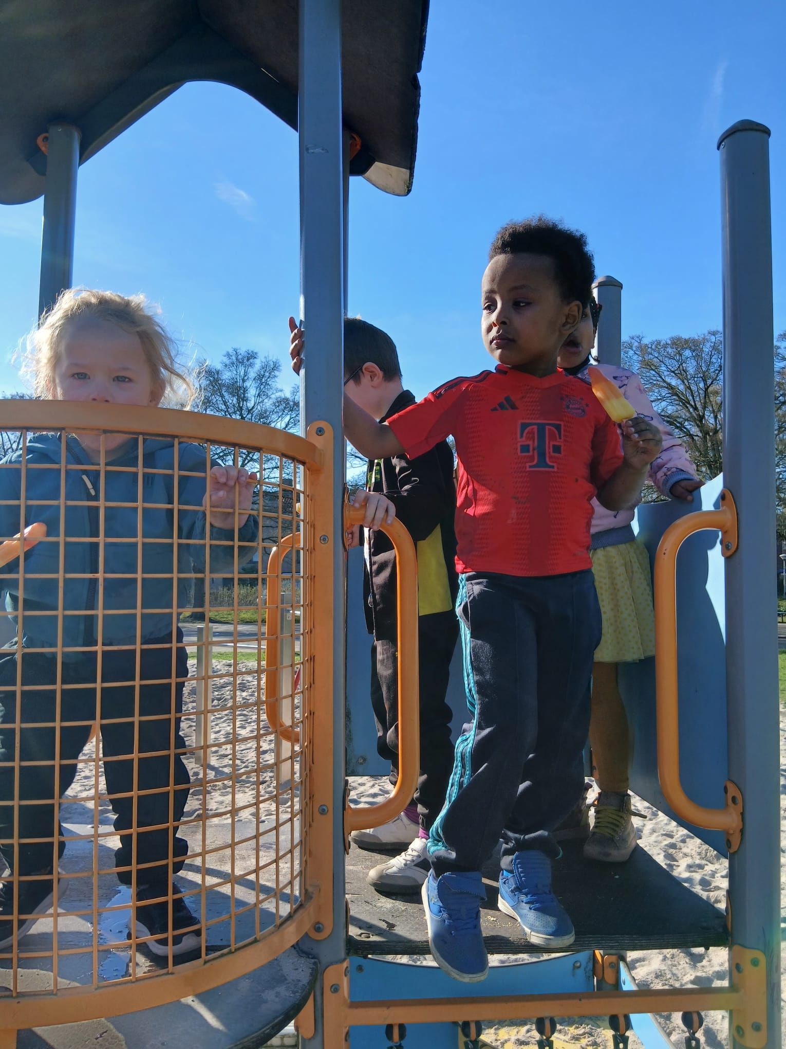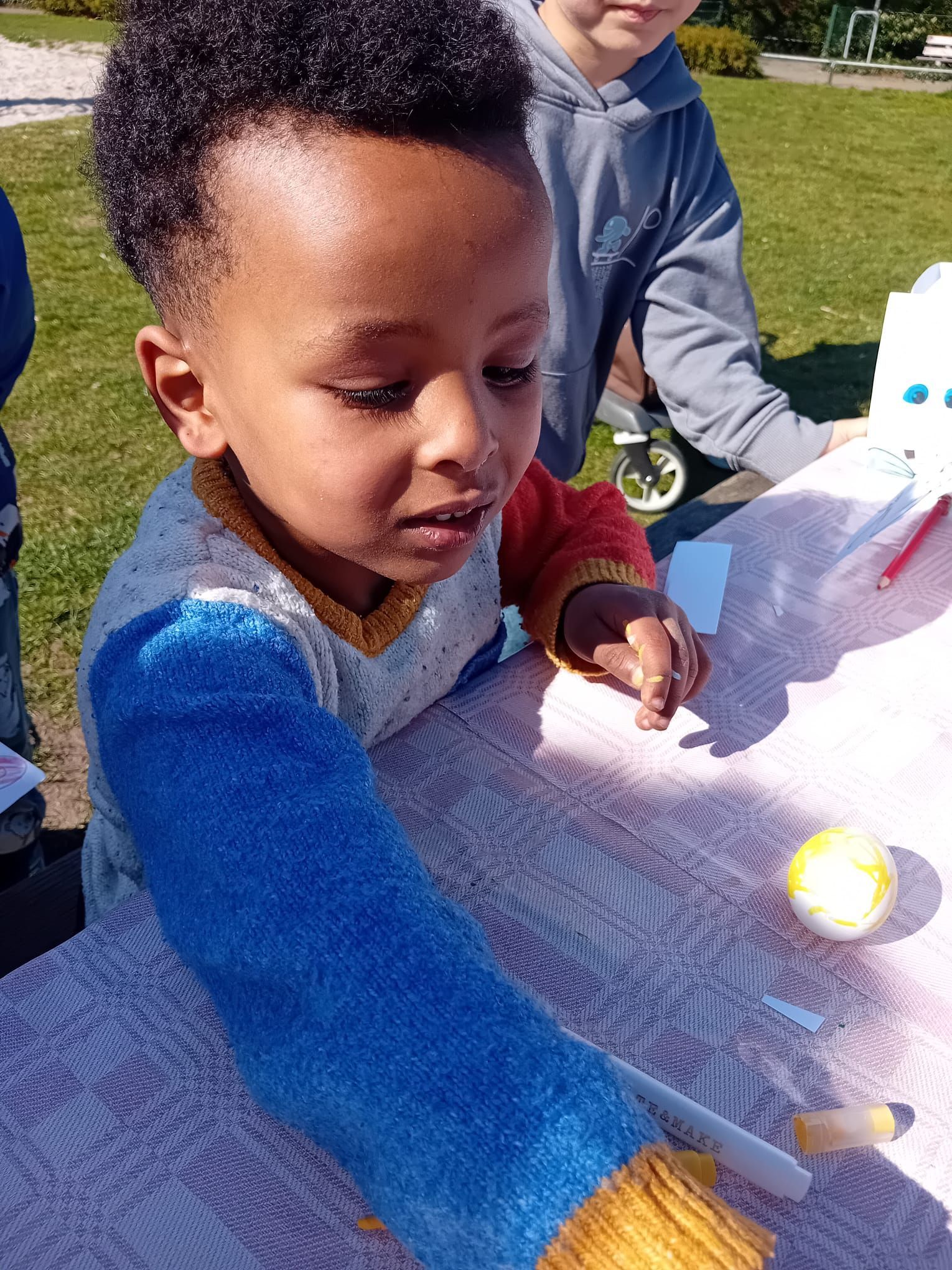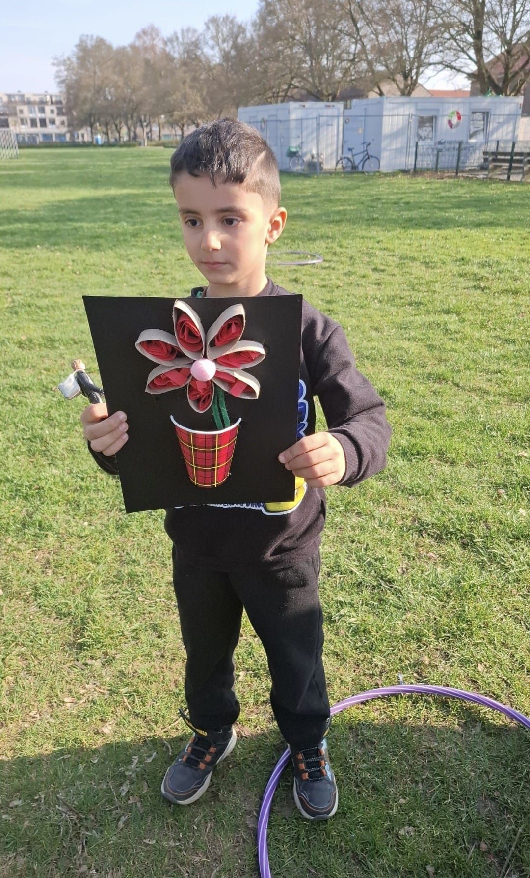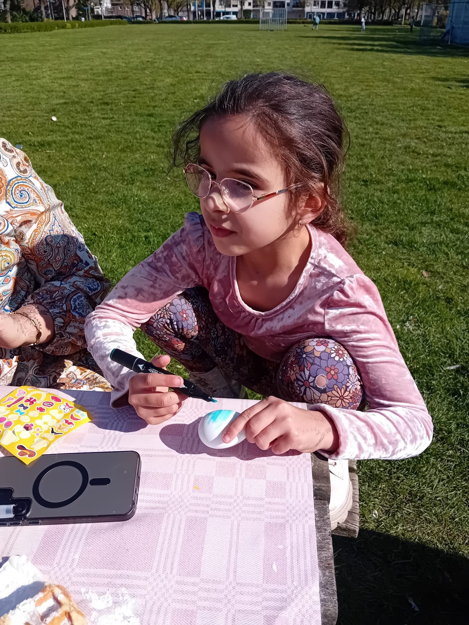 2026-04-01: De kinderen zijn weer volop bezig met knutselen. Bij het mooie weer kunnen ze gebruik maken van het veld voor de deur van het Praathuis. Door het Woonbedrijf worden ze getrakteerd op wafels, poffertjes, frisdank en water.