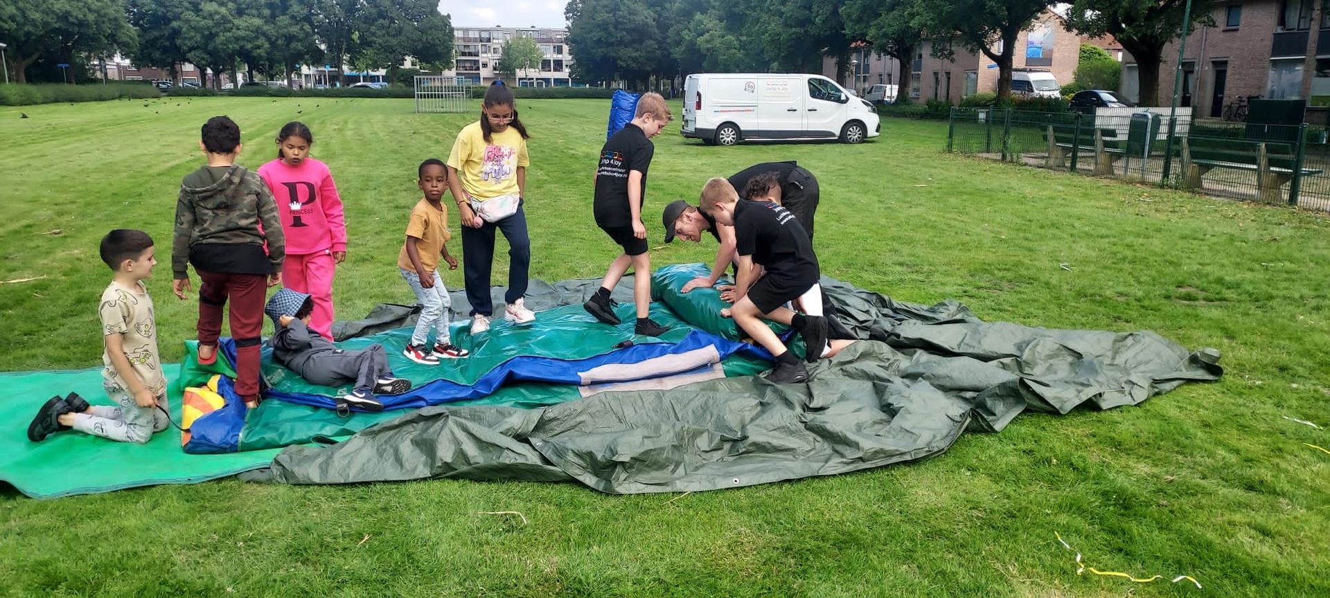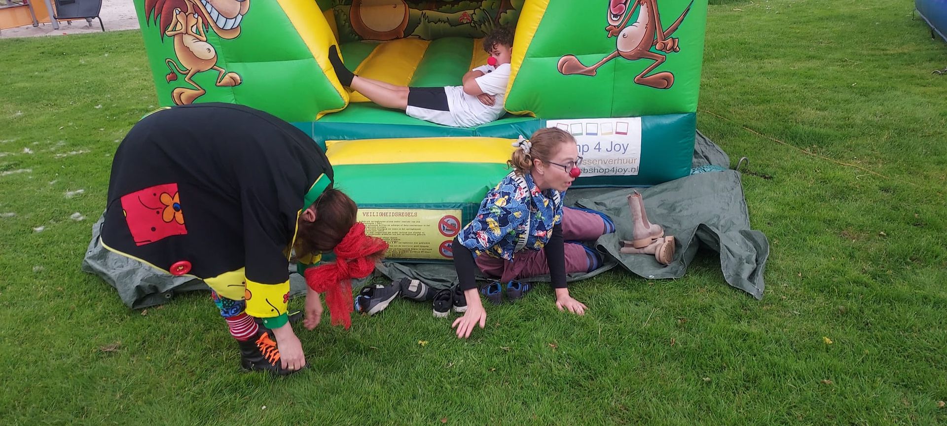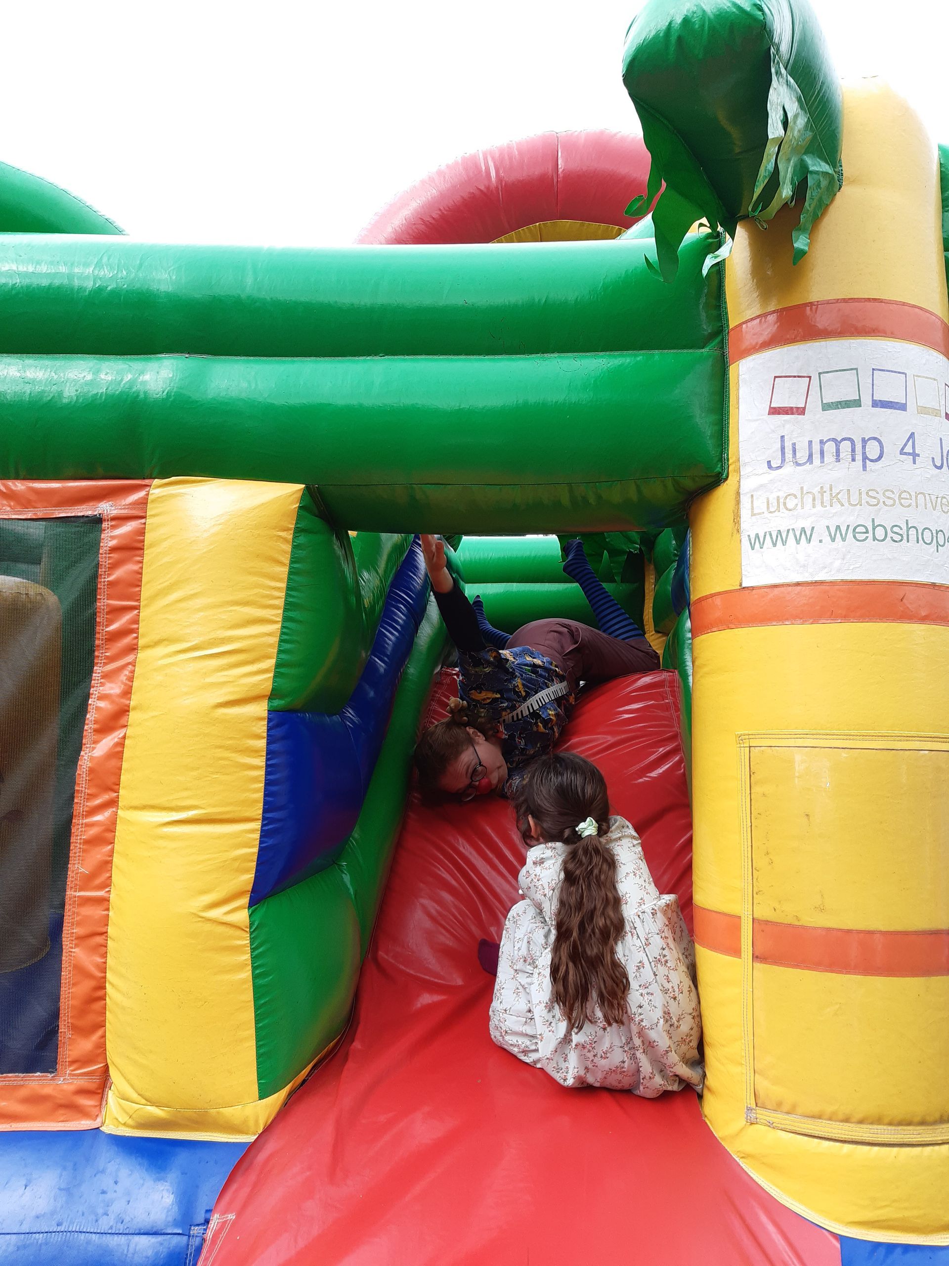 De kinderen konden zich heerlijk uitleven op allerlei luchtkussens. En natuurlijk was er wat lekkers te eten en te drinken.