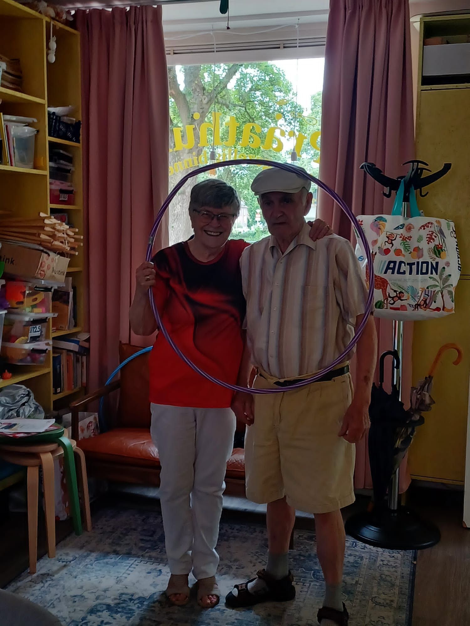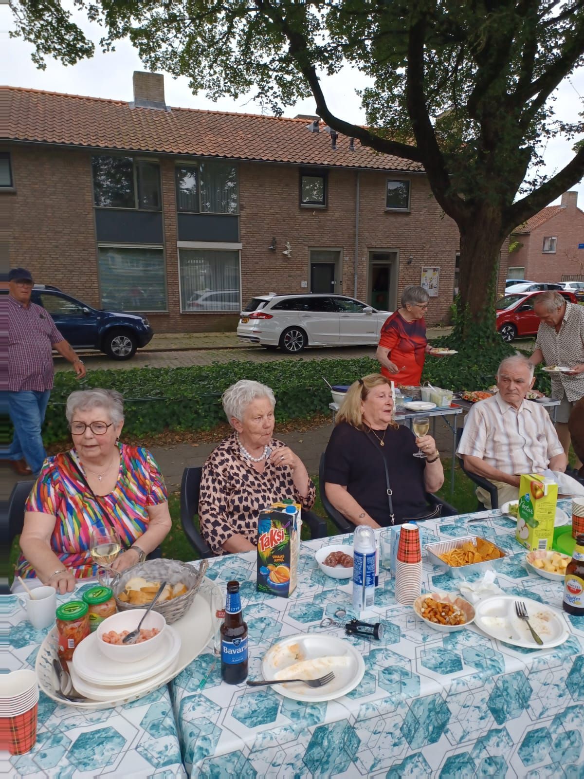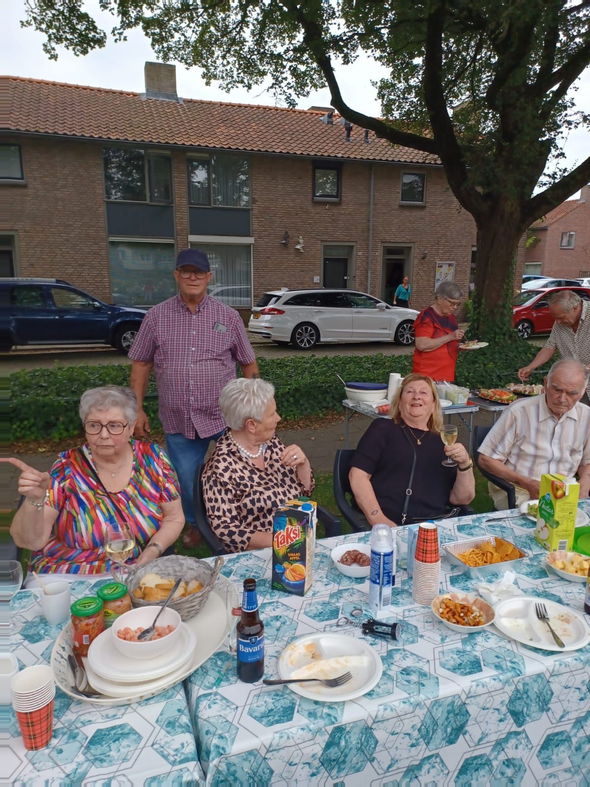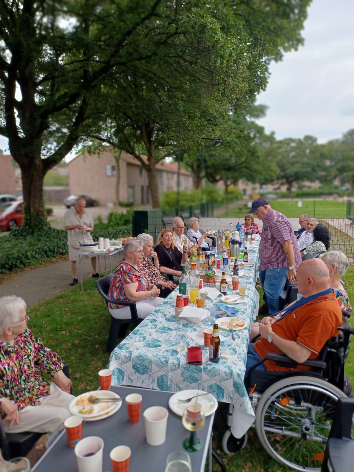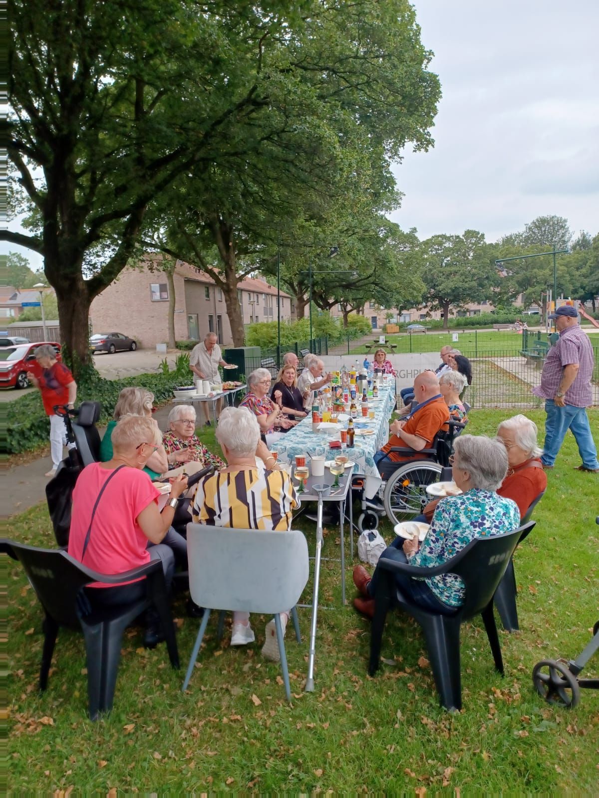 De verjaardag van Jan, de man van bestuurslid Tiny, werd dit jaar gevierd op het veldje tegenover het Praathuis. Veel van de actieve vrijwilligers waren daarbij.