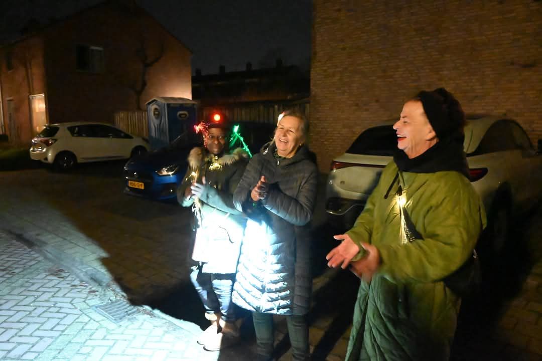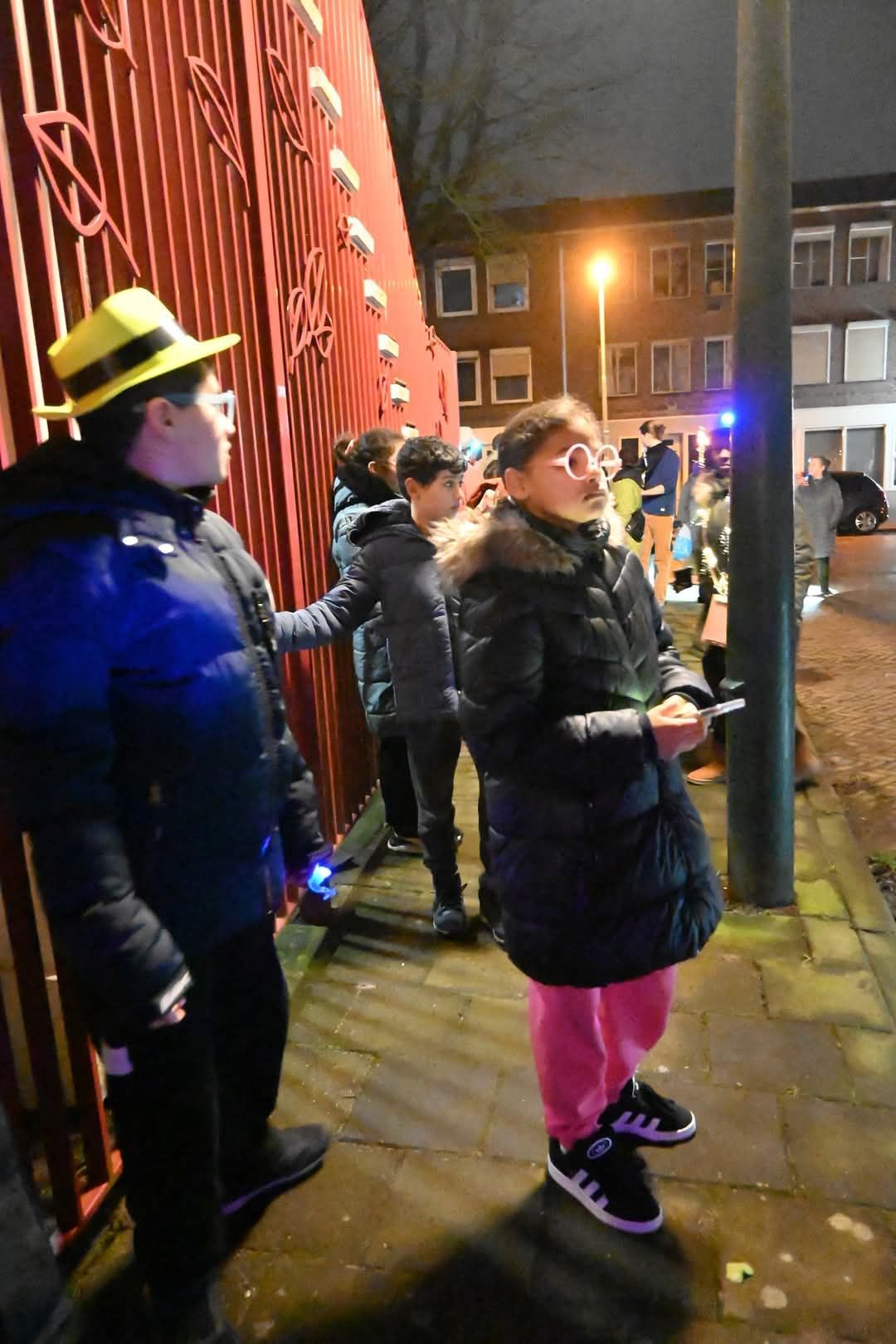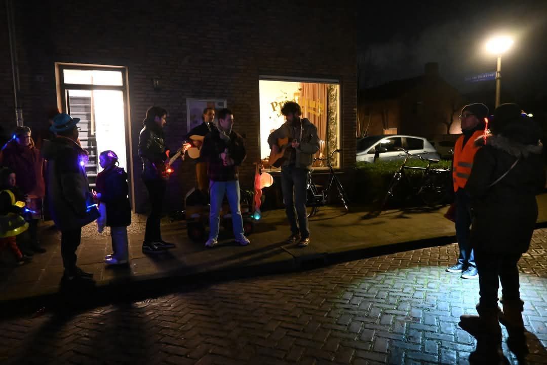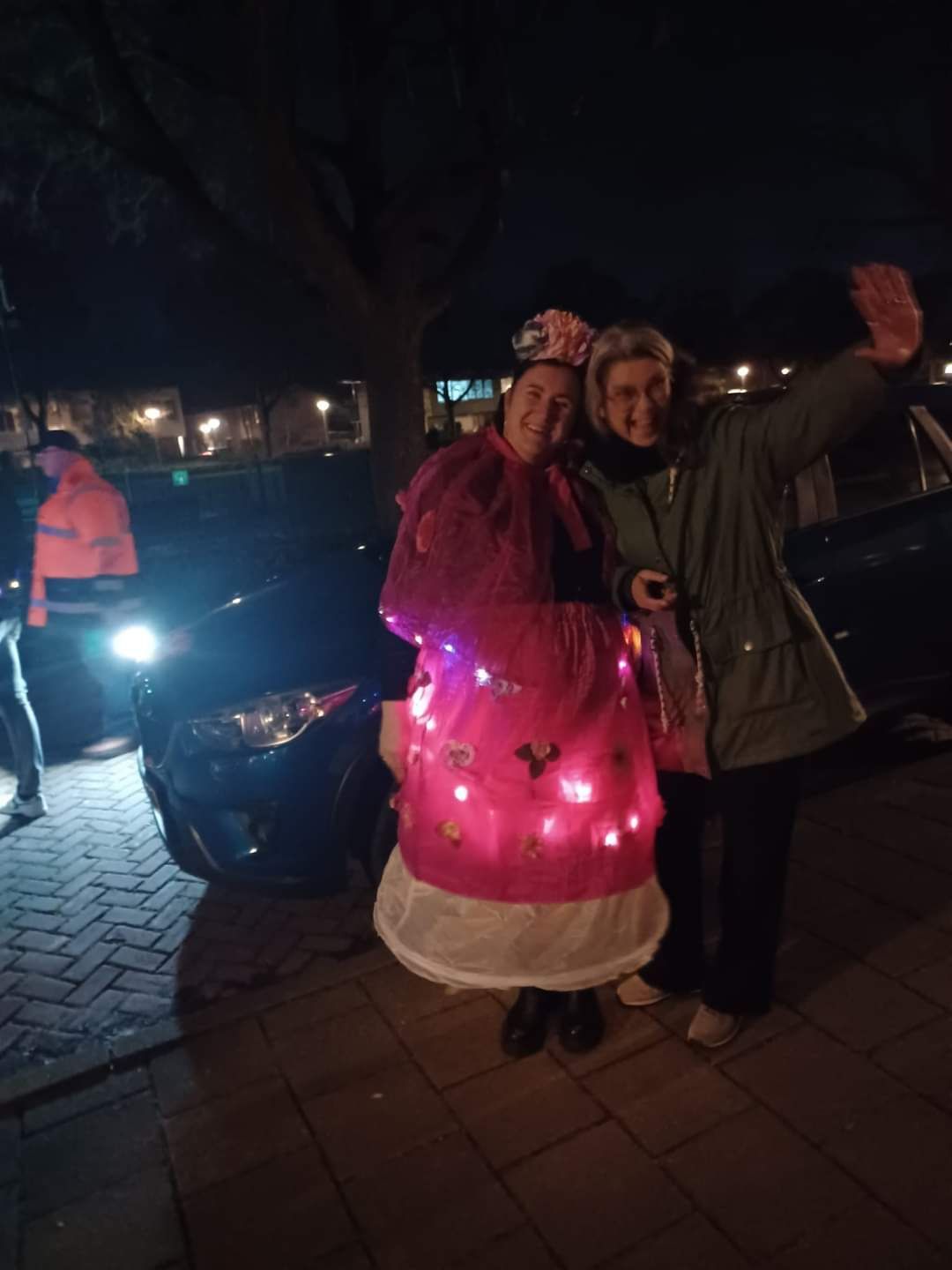 Een kleine tocht met de versierde fietsen en lichtobjecten door de buurt o.b.v. muziek en een vuurspuwer. Ook werden een aantal van de nieuwe geveldoeken bekeken (zie fotoboek "Geveldoeken").